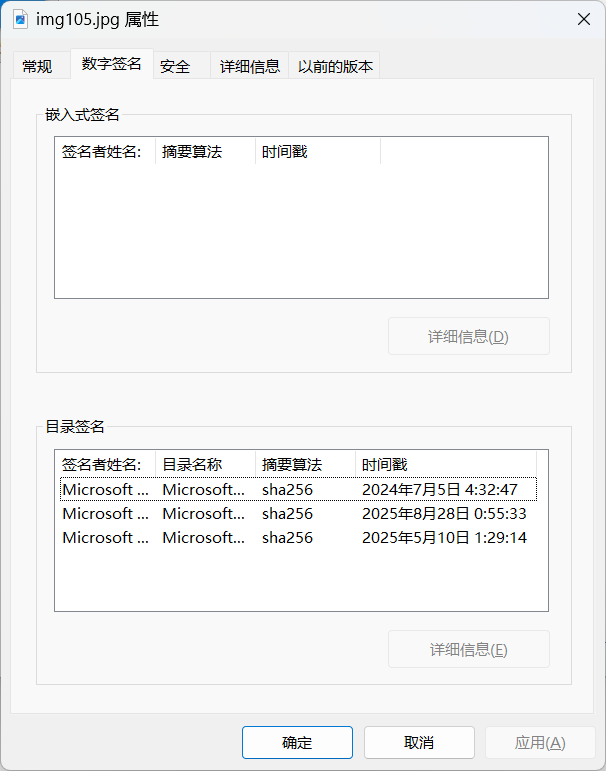 可以发现这个好的原文件是有数字签名的,然而这个坏文件则没有。那么,什么是目录签名呢?这里引用微软文档中找到的解释: